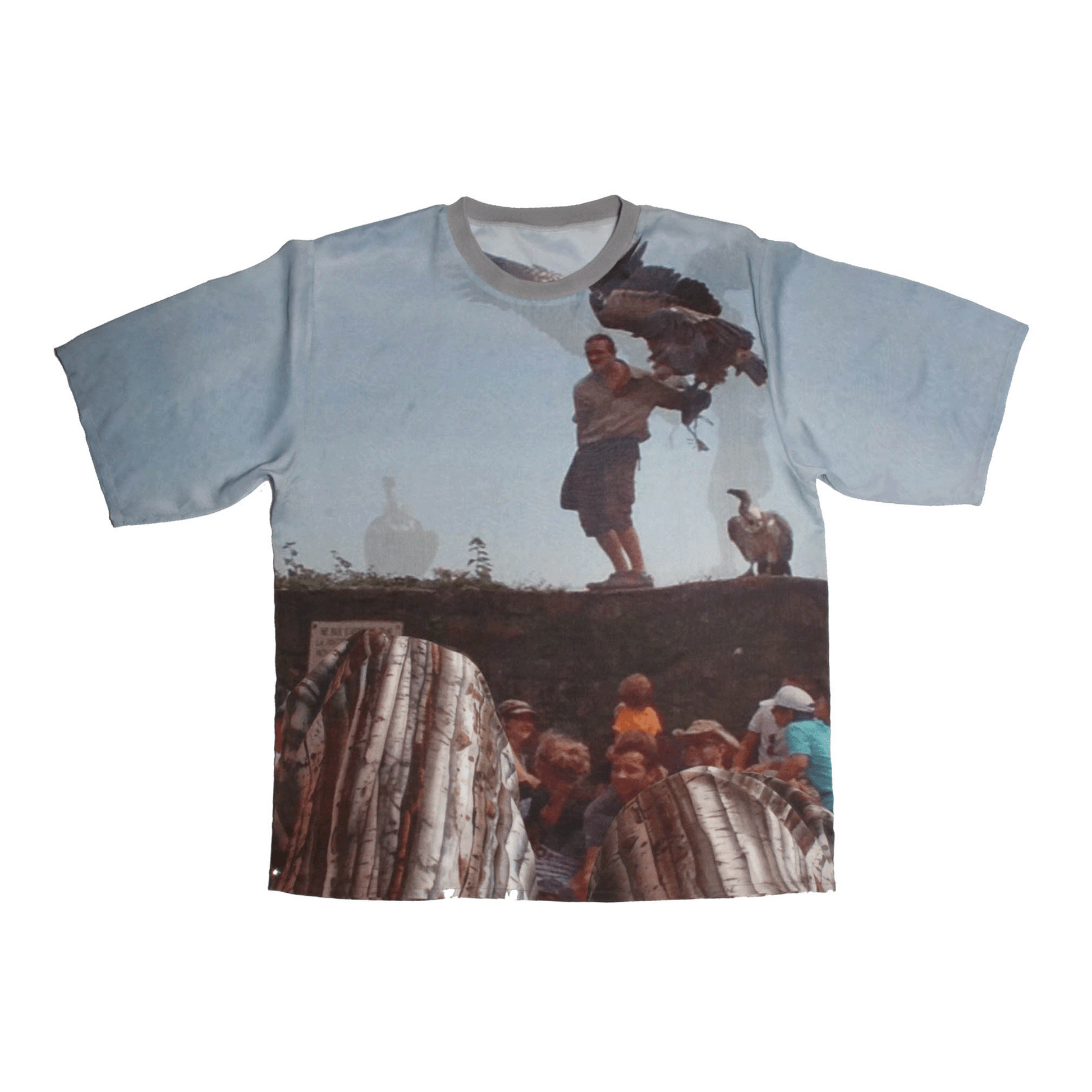 Lightweight sheer printed short sleeve t-shirt with continued image on rear.