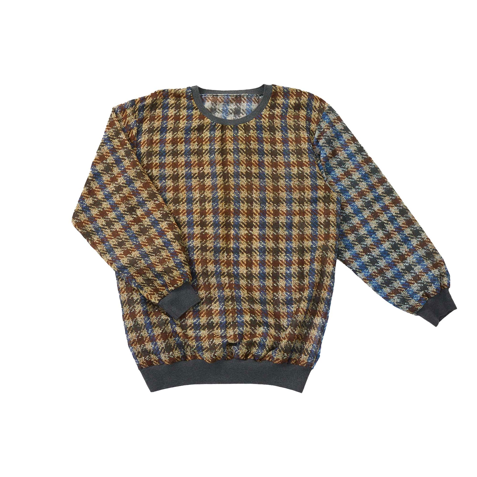 Sheet longsleeve shirt with ribbed neckline, cuffs and waste. Digital check pattern print allover.