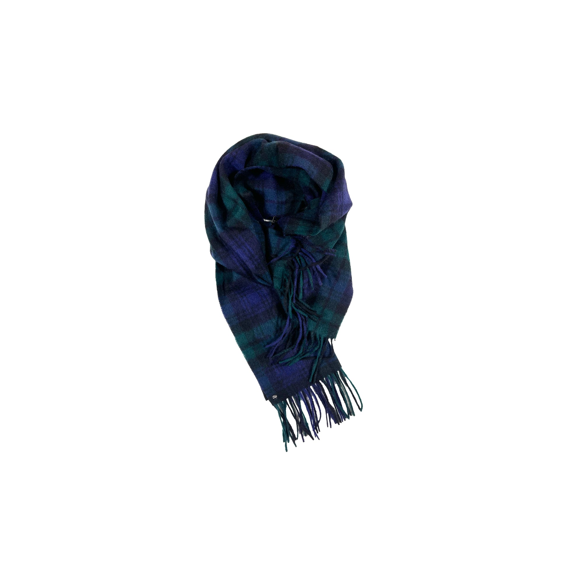 Wool fringed scarf with zip to hold in a tied position around the neck.