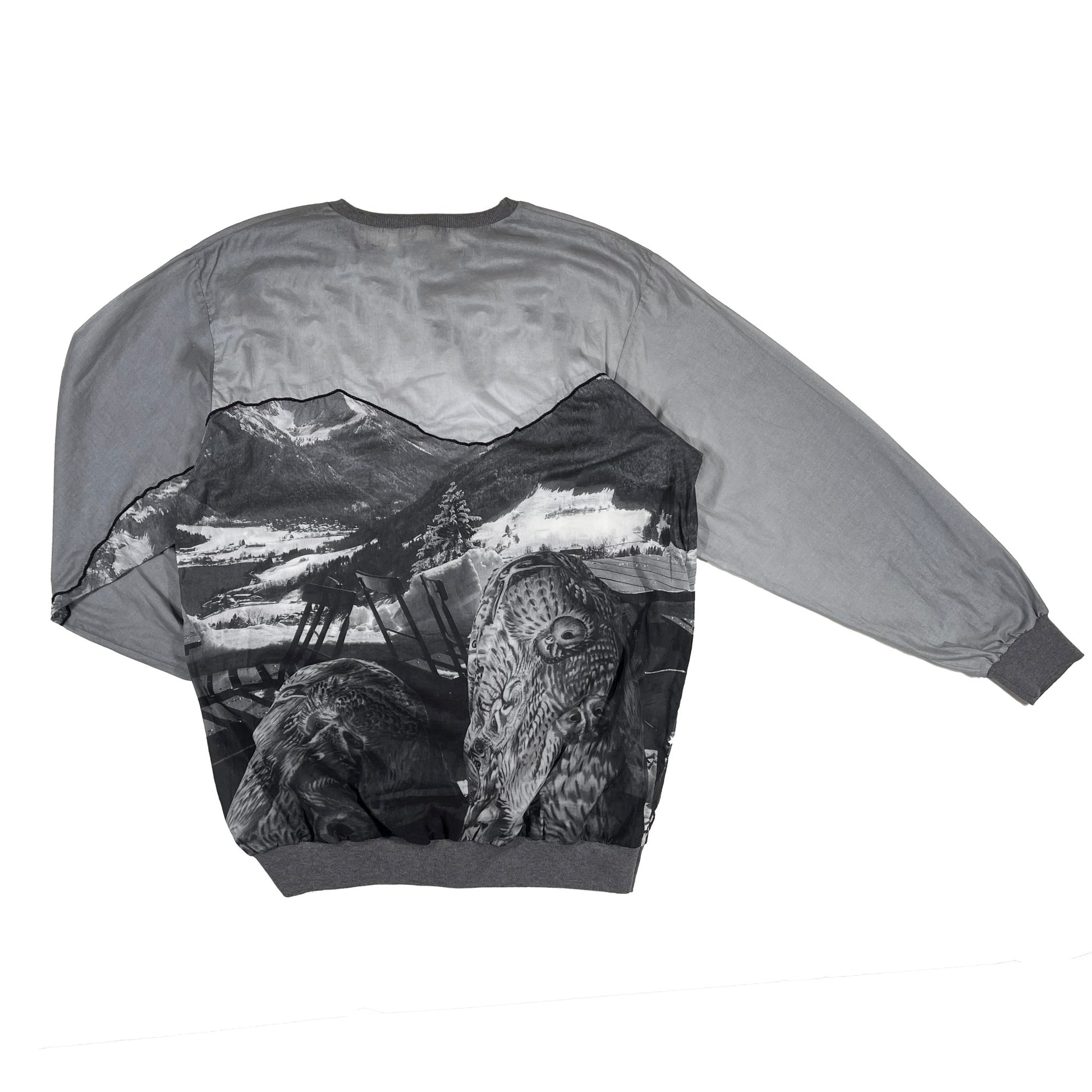 Embellished lightweight sheer printed long sleeve shirt with continued image on rear.
