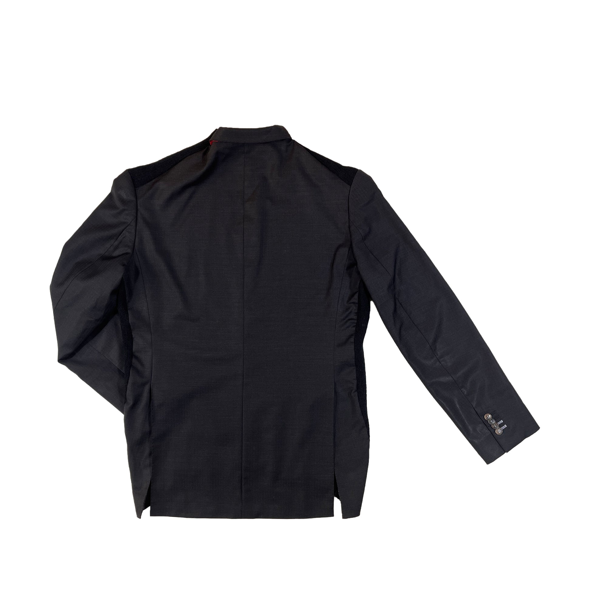 Deconstructed vintage jacket re-assembled with wool sweater. Features shoulder pads, slits in the back and turtleneck zipper to slip in.