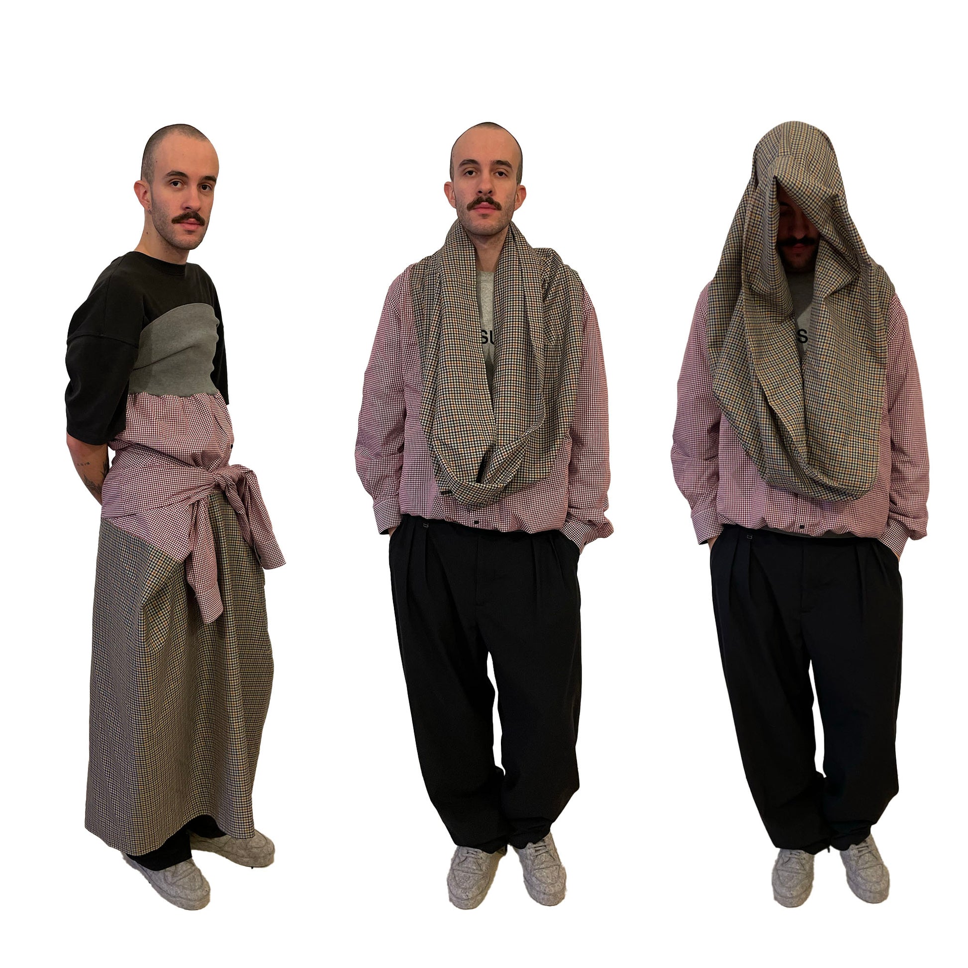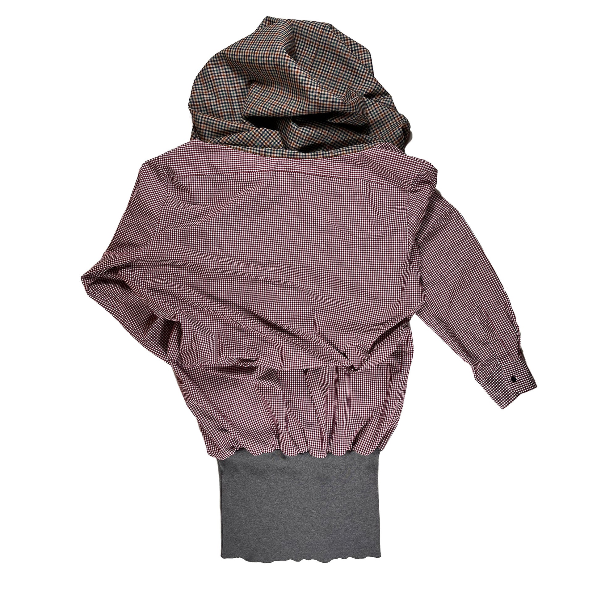 Cotton shirt with inserted waterfall front and elastic rib on hem. This item can be worn in multiple ways. It works as shirt, dress or top.
