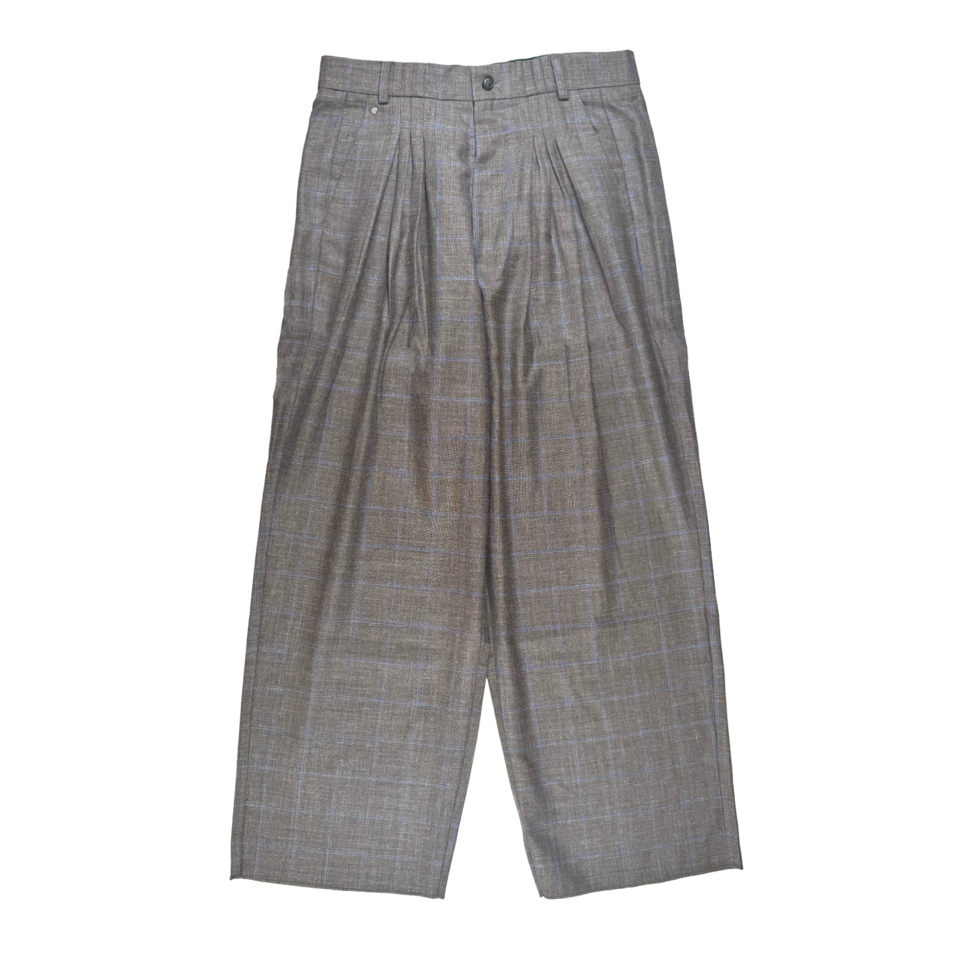 Signature ultrawide trousers with triple pleat and dropped crotch. Features two pockets in the front and one buttoned back pocket.