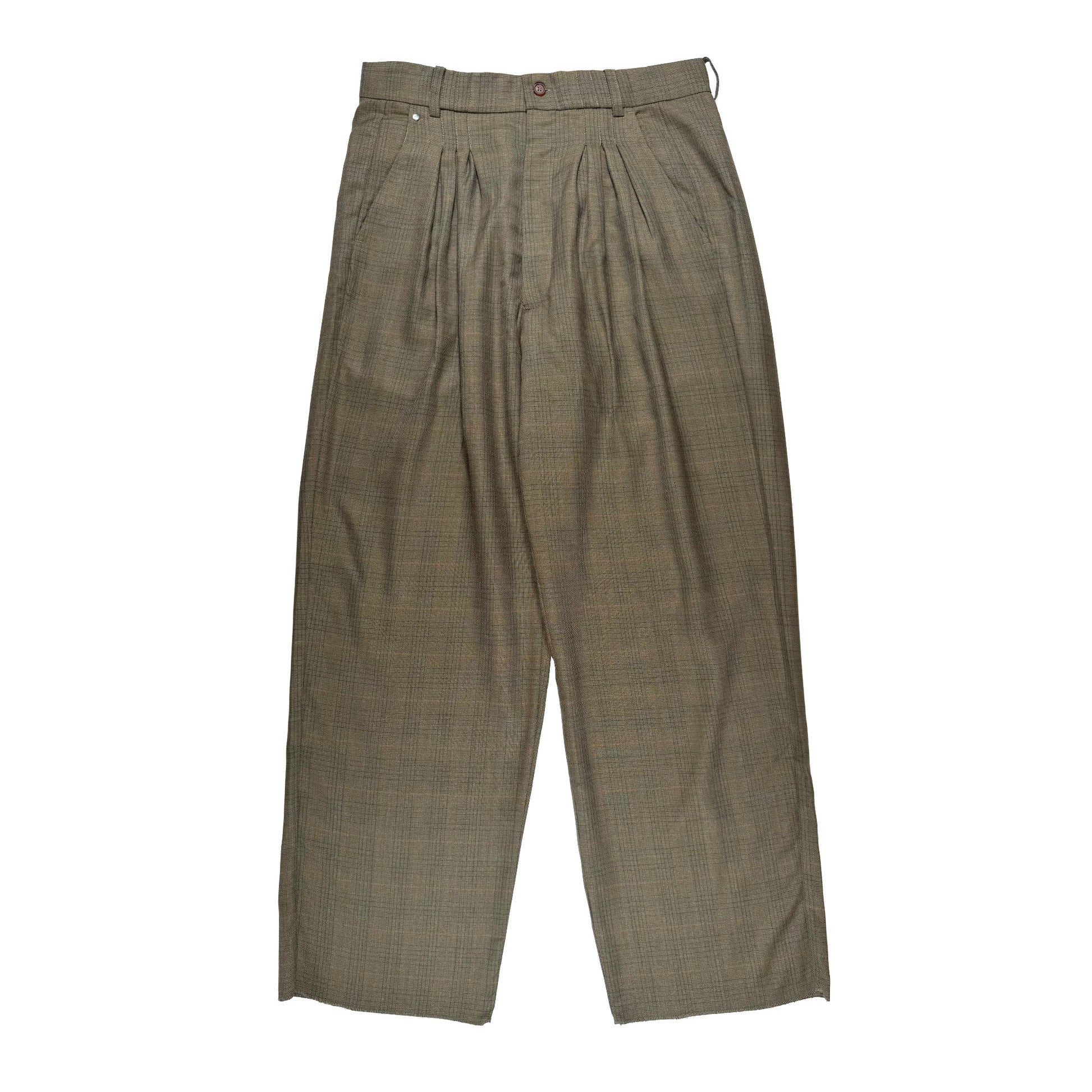Signature ultrawide trousers with triple pleat and dropped crotch. Features two pockets in the front and one buttoned back pocket.